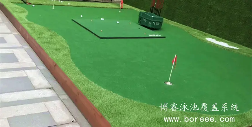 绿草青青,自在悠闲。隐形平移池盖与高尔夫草坪合为一体,高超设计实现休闲平台的多功能。